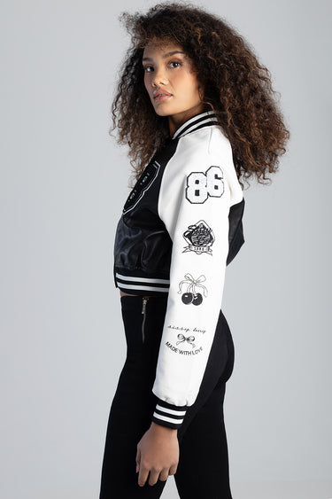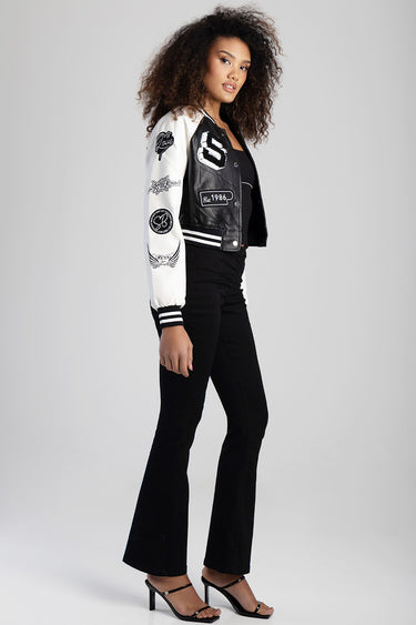 Made The Cut is a faux leather bomber jacket with Sissyboy logo patches on the front and sleeves. Stylish and versatile, it pairs perfectly with sneakers, heels, or boots and complements any casual look.