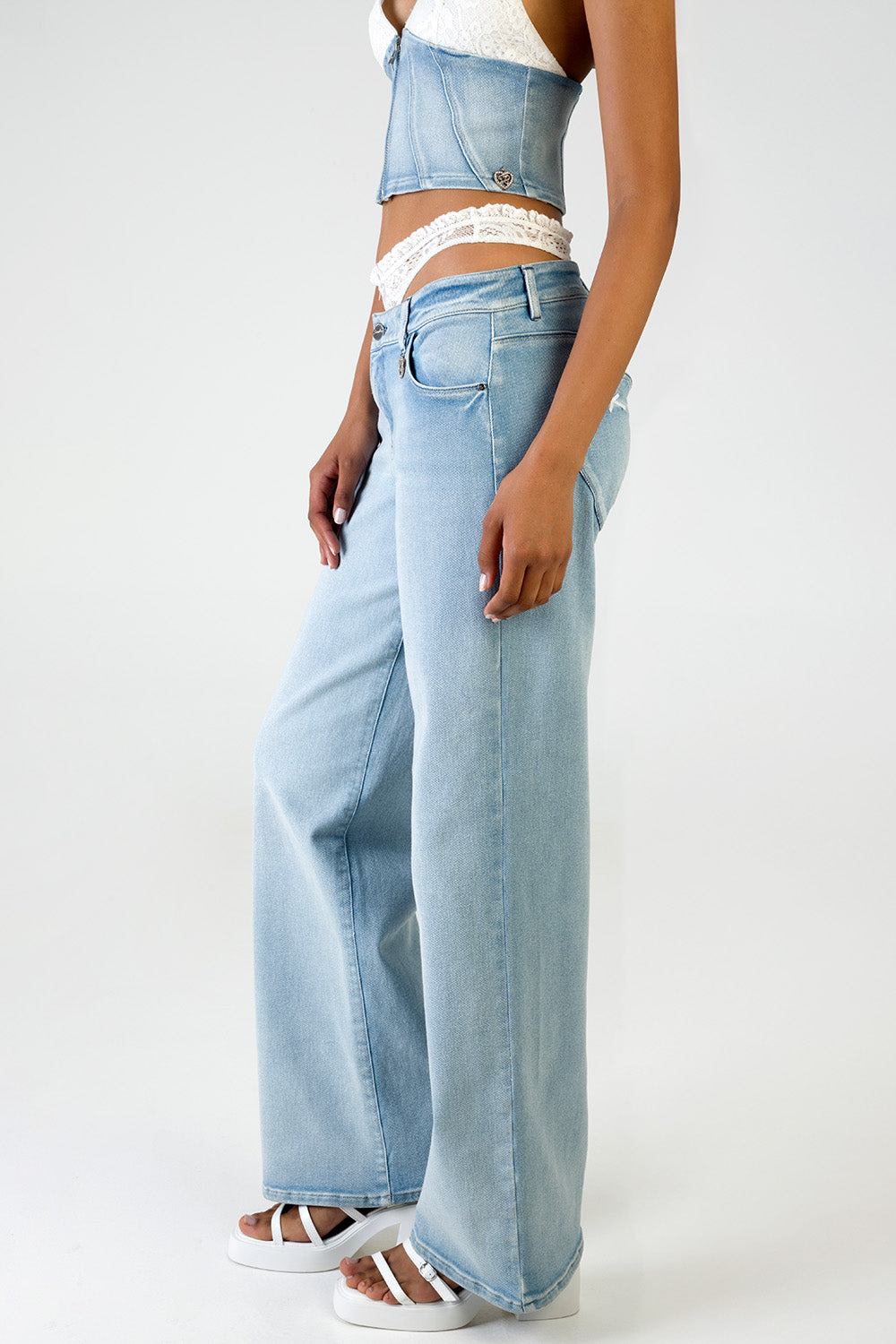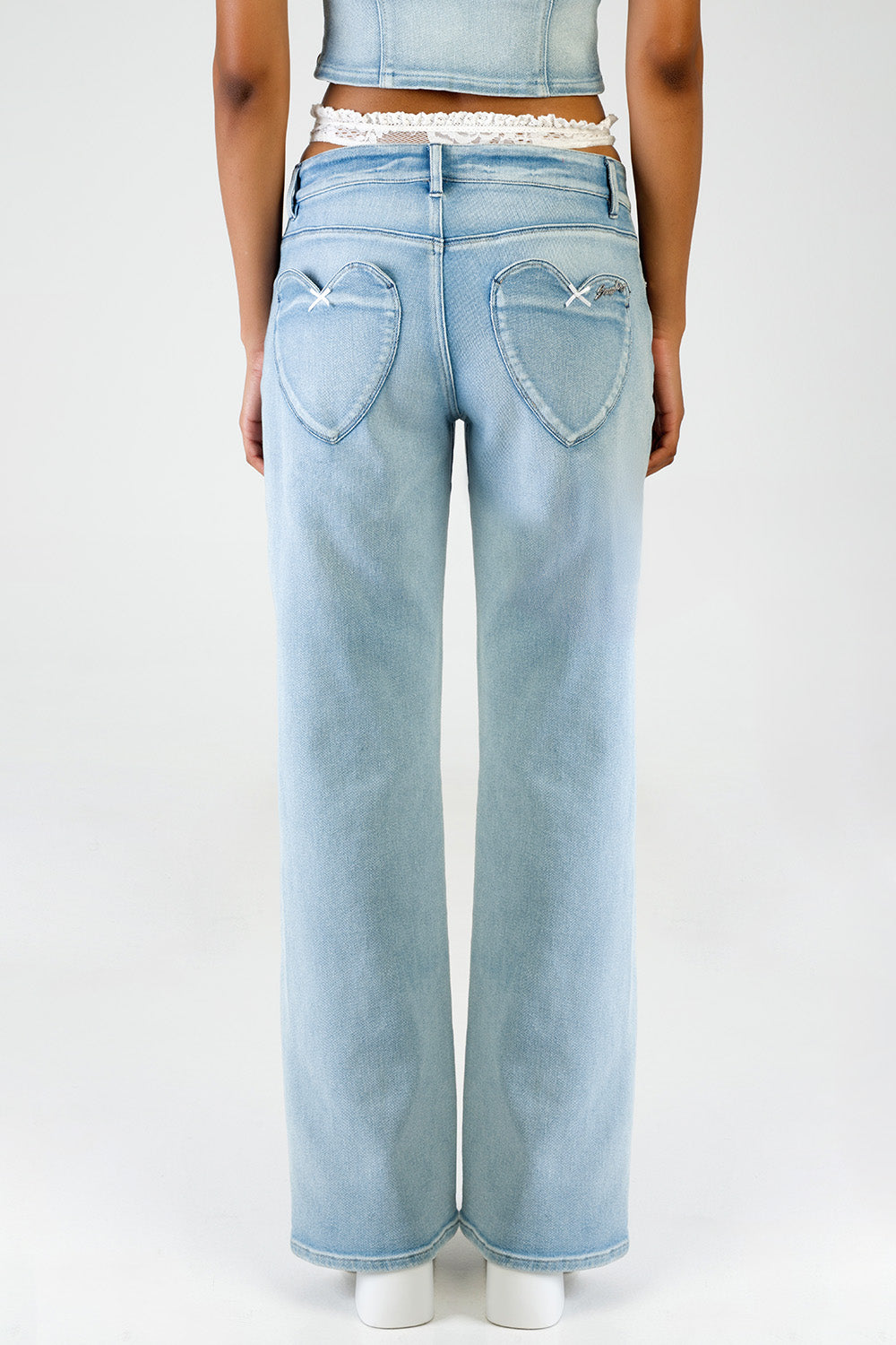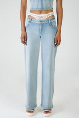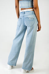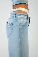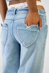 The Nicole Wide Leg Jeans are an effortless statement in modern denim. Featuring a low-waist fit, fluid wide leg and signature heart-shaped back pockets, they bring a playful yet elevated edge. Pair with the Nicole Denim and Lace Halter Neck Top for a confident, fashion-forward look.