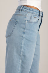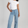 Samantha is a high-waisted tailored wide-leg jean made from soft stretch denim for easy movement. With a structured fit through the waist and hips, it flows into a relaxed leg for a chic, timeless look. Whether paired with a fitted blouse and heels for a sleek office look or a relaxed tee and sneakers for a more effortless vibe, the Samantha transitions seamlessly across occasions.