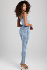 Mid Waist Basic Skinny With Back Pocket Embroidery