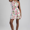 Living Lux is a blouson mini dress with a high neck and dropped waist, adorned with floral prints all over. Elegant yet relaxed, it pairs perfectly with heels, sneakers, or sandals—ideal for casual days and weekend brunches.