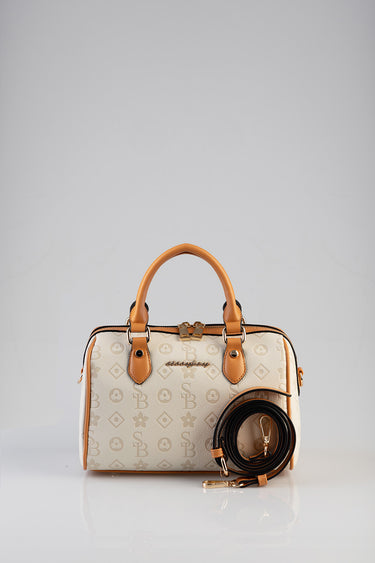 Debossed All Over Printed Bag With Long Second Strap and Tan Trims