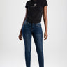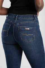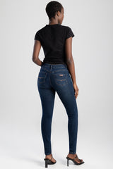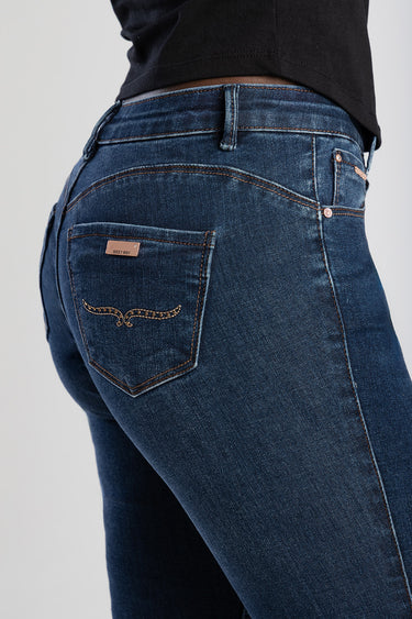 Logan is a dark vintage skinny jean, fitted through the hip to hem in stretch denim for comfort. Features an embroidered and diamante detailed back pocket profile, as well as rose gold trims for a stylish, eye-catching finish.