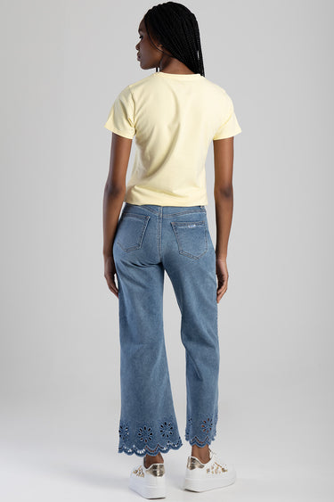 Regular Fit Top With Flower Embroidery Design And Bling Logo