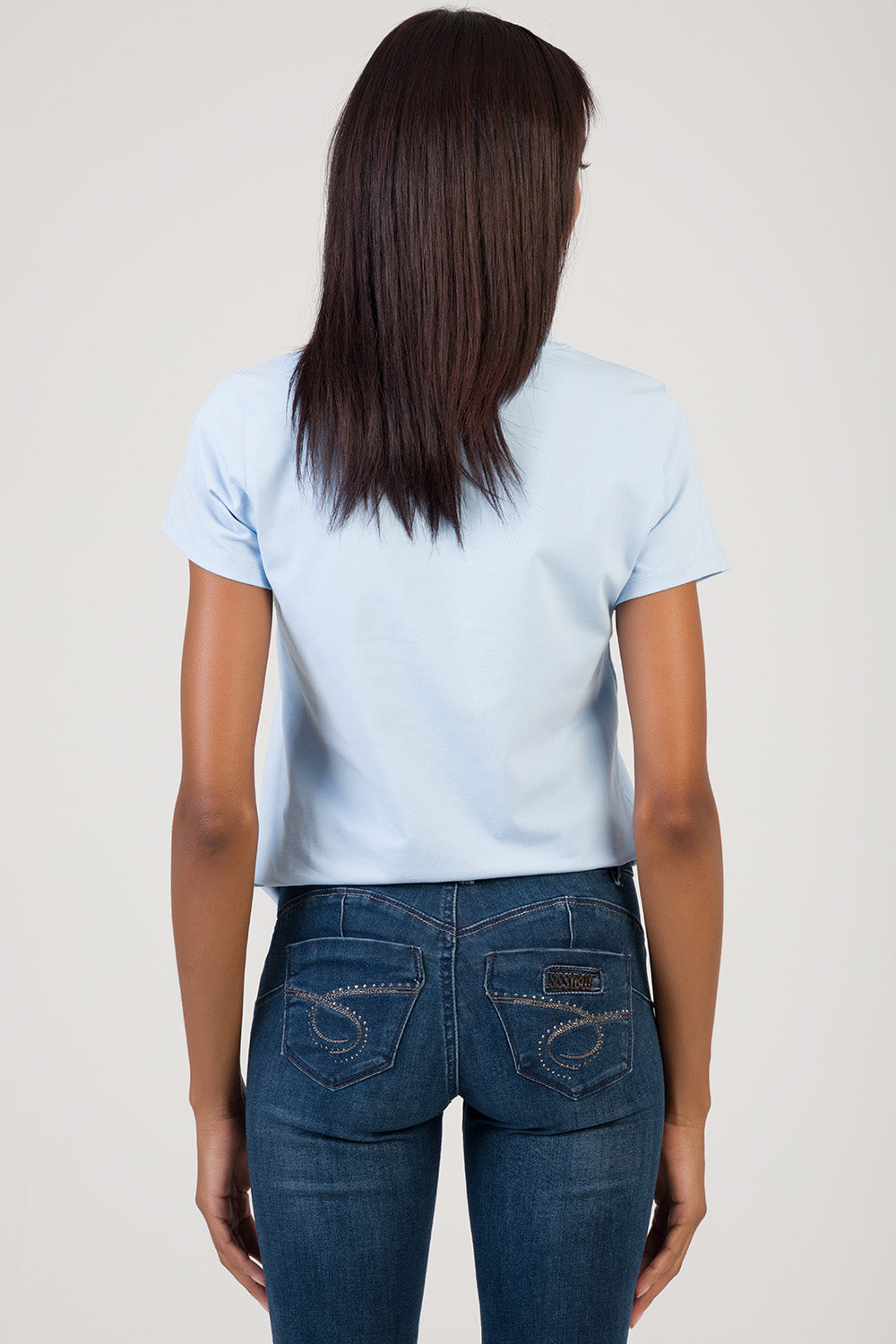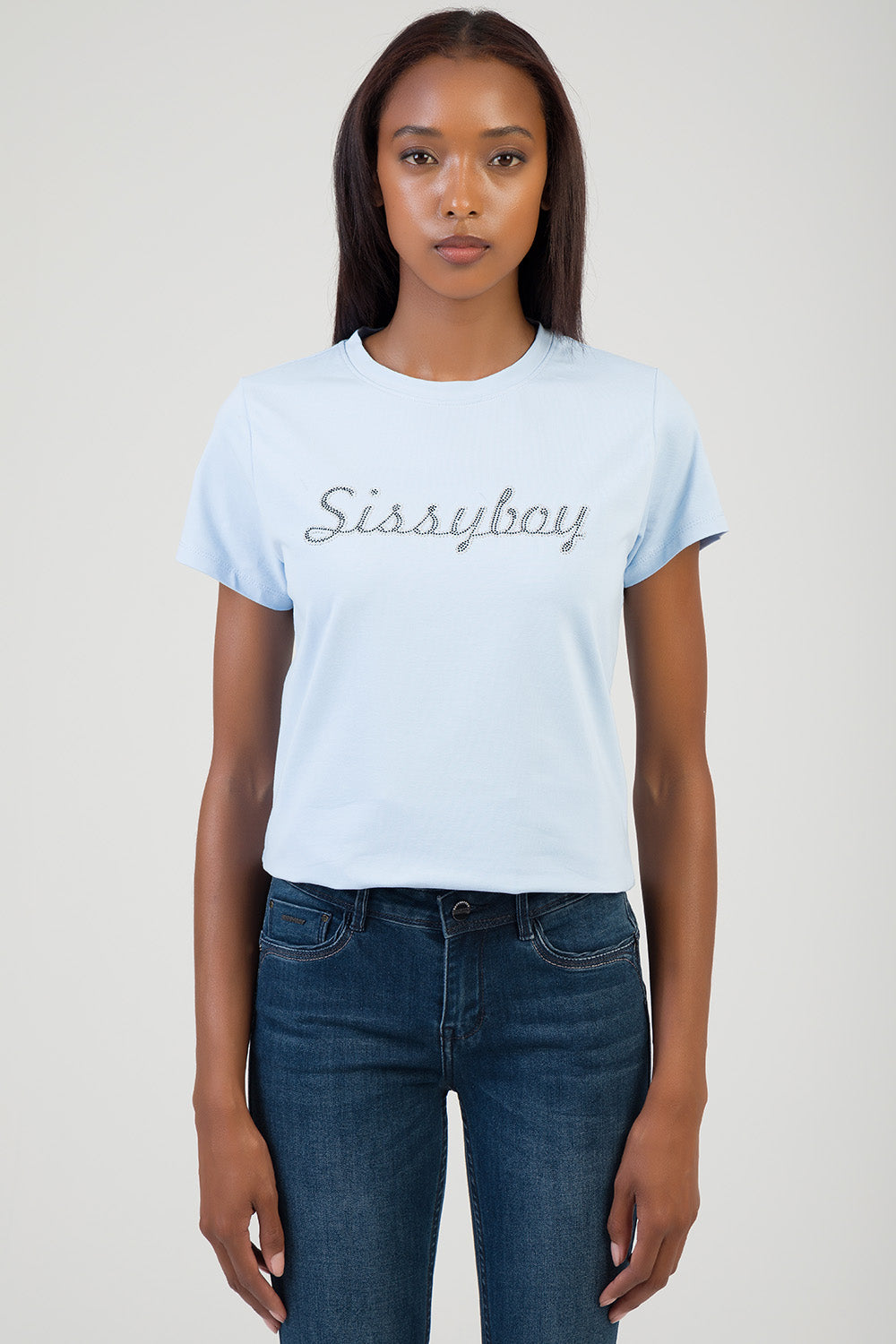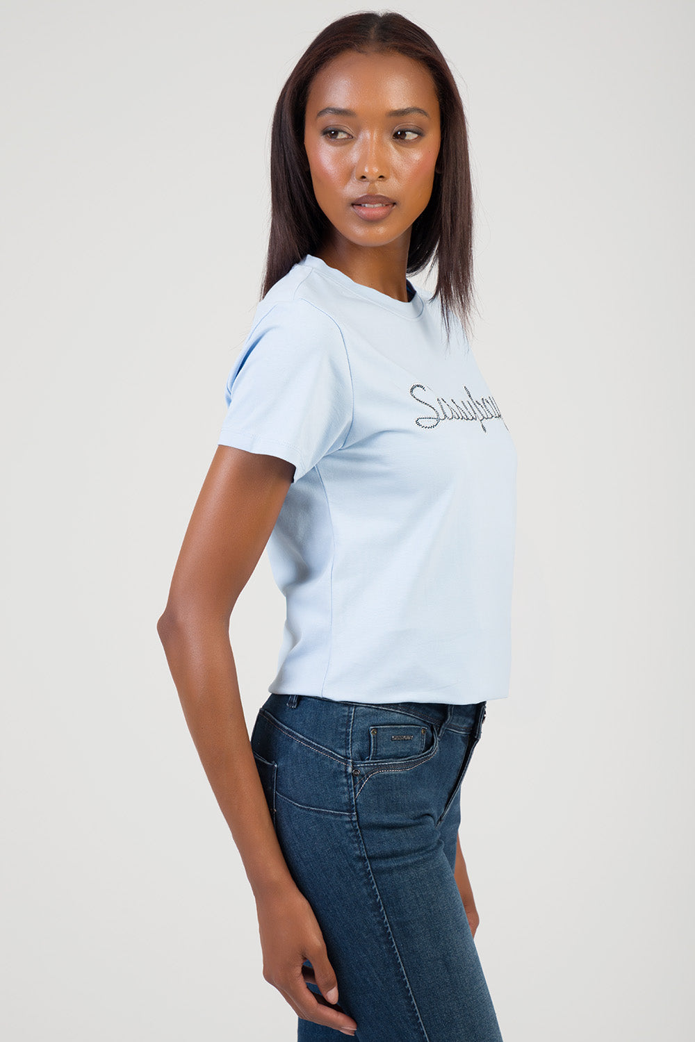 Keep it effortlessly chic with this regular-fit T-shirt featuring a sleek black and bling branded transfer. Crafted for comfort with a classic crew neckline, it adds a subtle sparkle to everyday denim looks.
