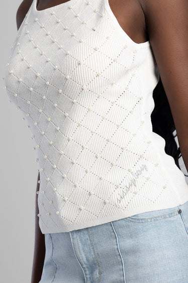 High Neck Knit Top With Pearl Detail