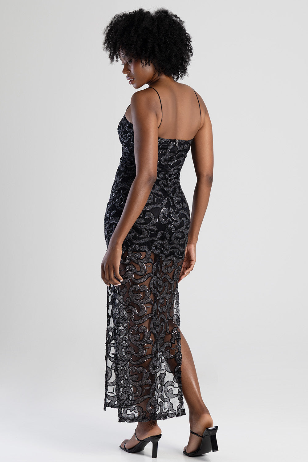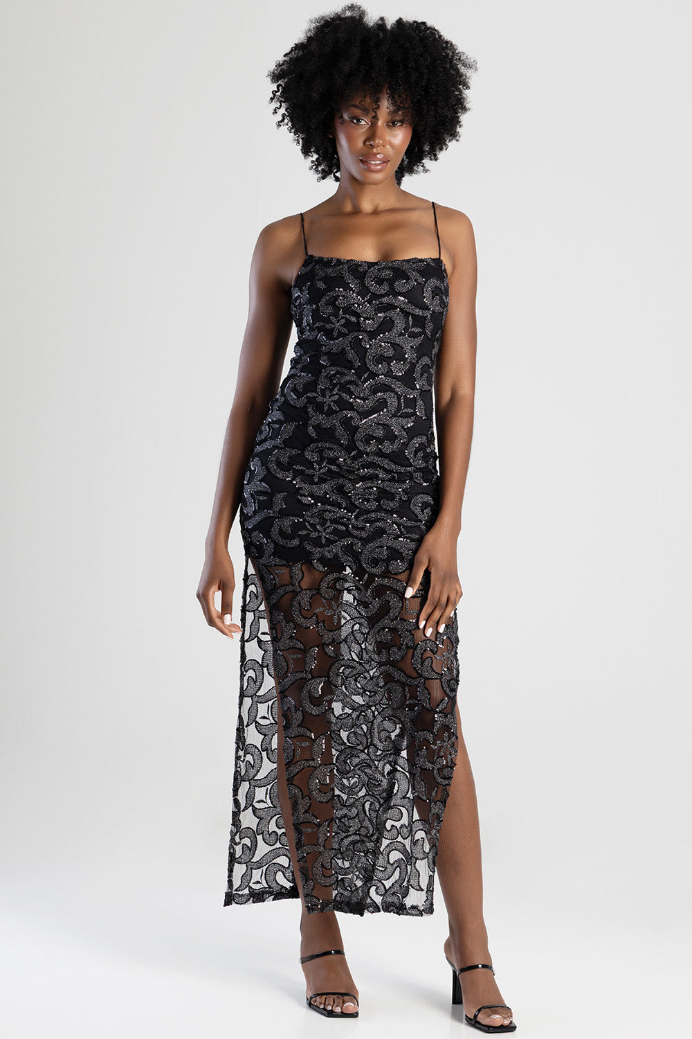 The Give My All Basic Glam Maxi Dress in black delivers sleek sophistication with a square neckline, thin straps, and a timeless sleeveless silhouette. Its subtle sequin detailing adds refined glamour, while the maxi length creates an elongating, elegant finish. A chic statement piece perfect for evenings that call for effortless shine.