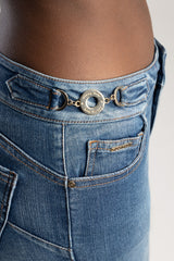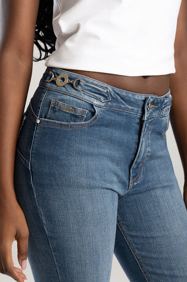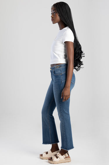 Mid Waist Flare With Decorative Waistband Buckle Detail