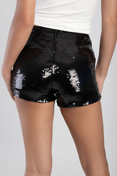 The Tongue Tied Mini Short delivers high-impact shine with its fully sequin-embellished finish. Cut in a sleek high-rise silhouette and completed with a discreet side zip, it offers a flattering fit that moves smoothly with you. Bold, fun, and unapologetically eye-catching, these mini shorts bring instant energy to any outfit.